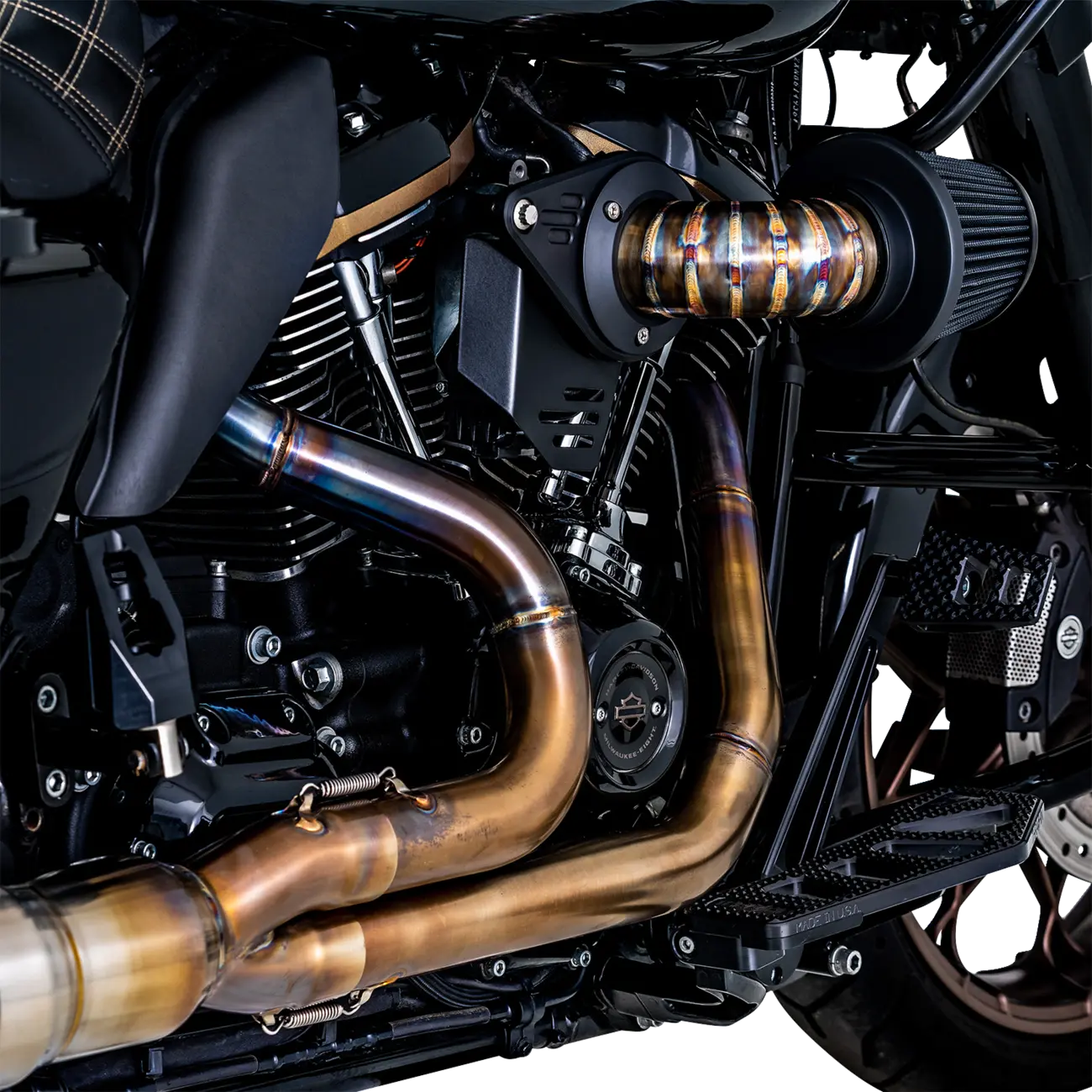 • Waschbarer, hochdurchlässiger, schrägnasiger Kegel-Luftfilter mit gestanztem V&H-Logo