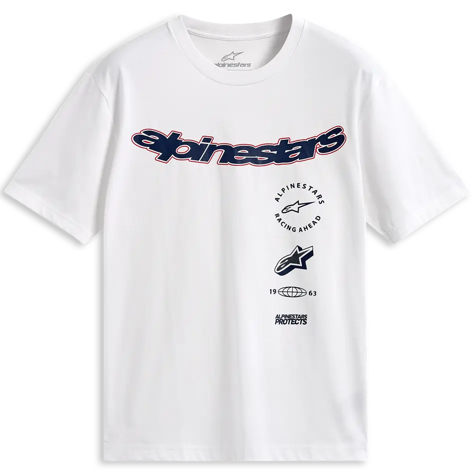 • Alpinestars curved logo with multi stacked logos.