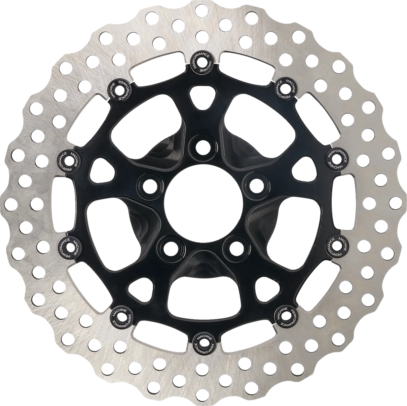 • Wave cut braking surface is drilled in a sweep pattern for optimal heat dissipation with a reduction in weight