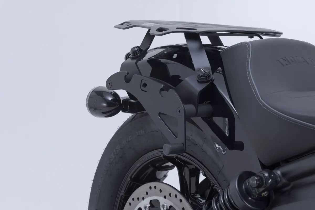 • The bike-specific bag carrier can be easily and quickly mounted on to original attachment points on the fender strut.