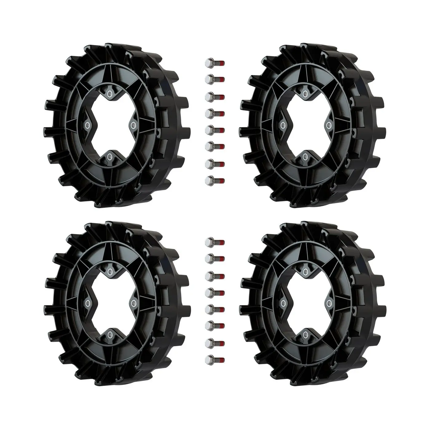 • Fits on track systems installed on vehicles with 4 bolt pattern and gearing ratio of 17 teeth and 17 teeth. Includes 4 sprockets and 16 sprocket bolts.