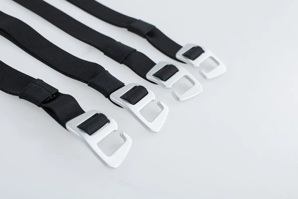 • 4 correas con lazo y ganchos de aluminio, longitud: 80 cm, 2 unidades para cada lado.