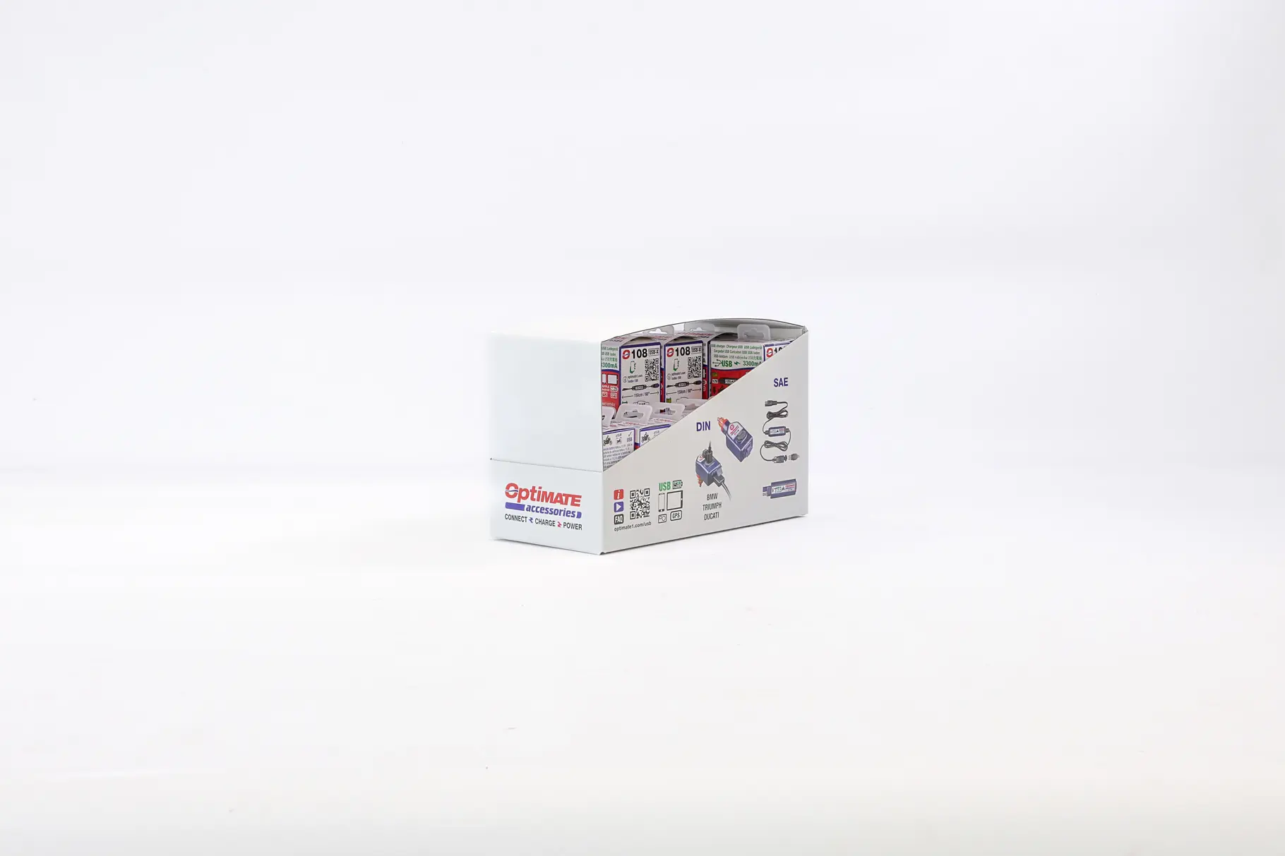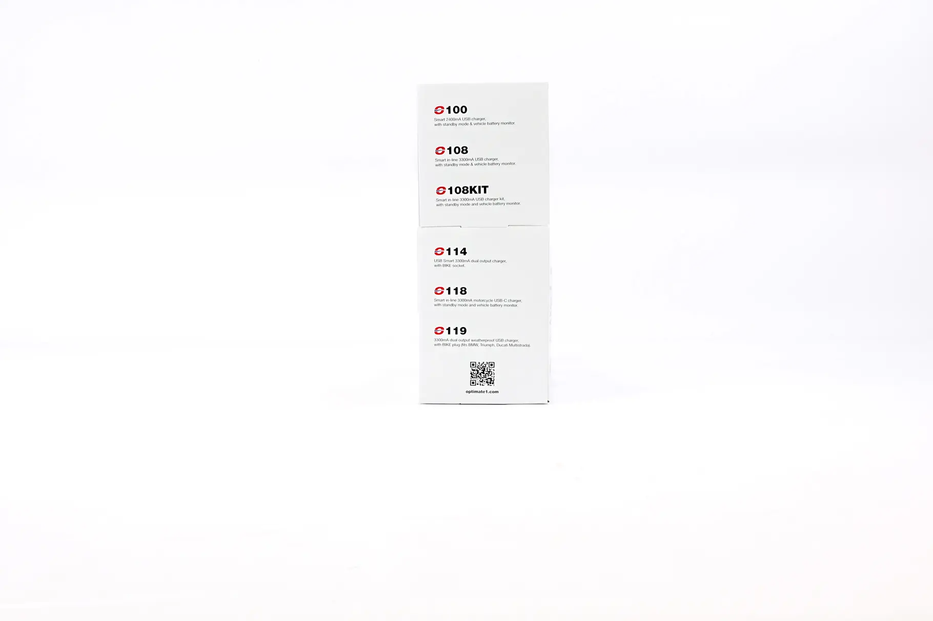 • 2x O-108 : Chargeur USB intelligent en ligne, avec mode veille et surveillance de la batterie du véhicule.