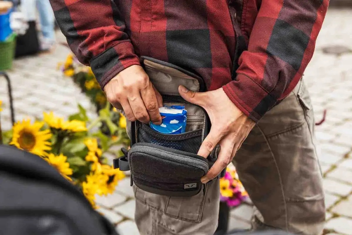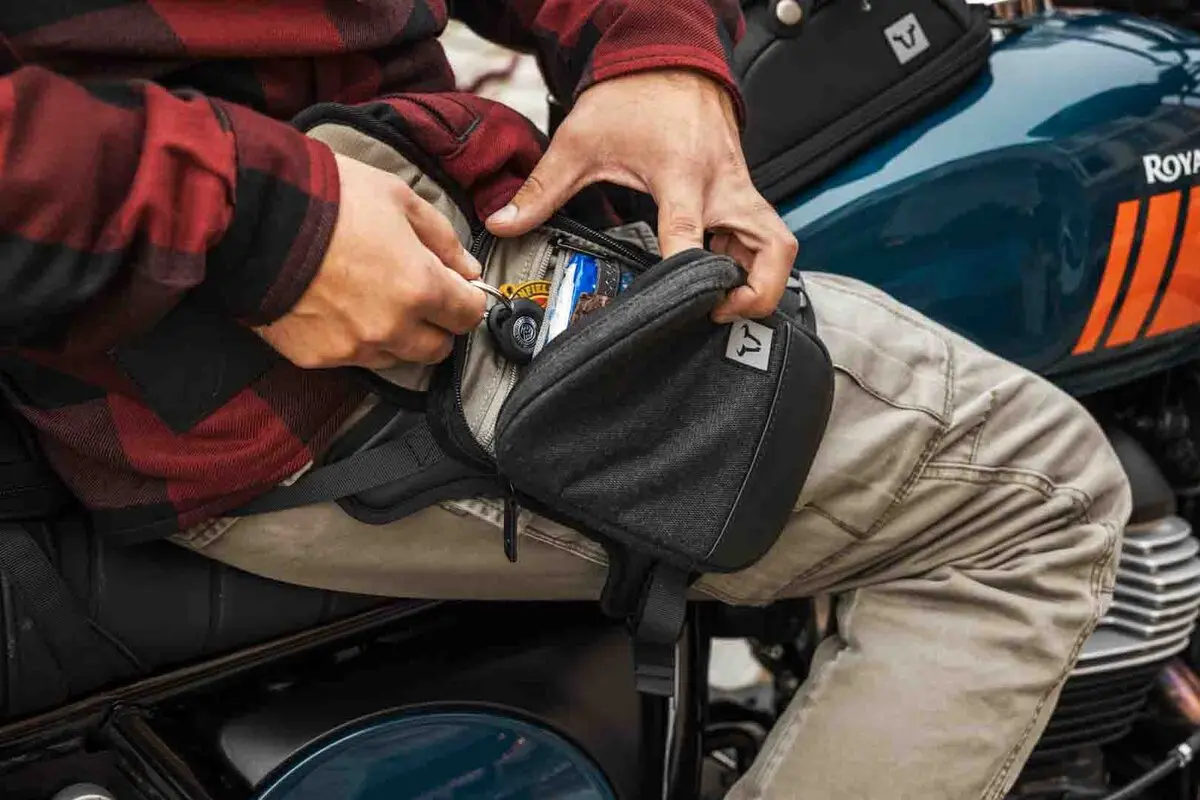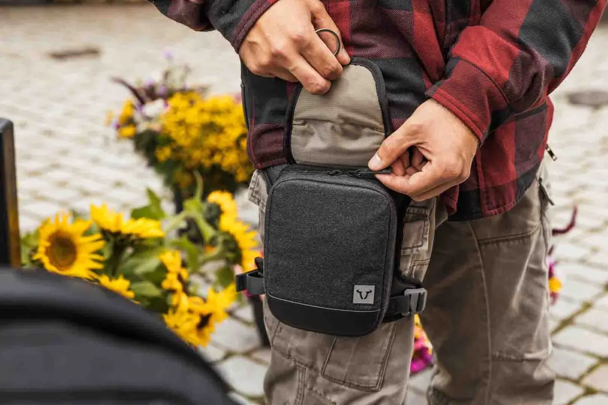 • Porté directement sur la jambe, il offre un accès rapide aux effets personnels sans limiter la liberté de mouvement pendant la conduite.