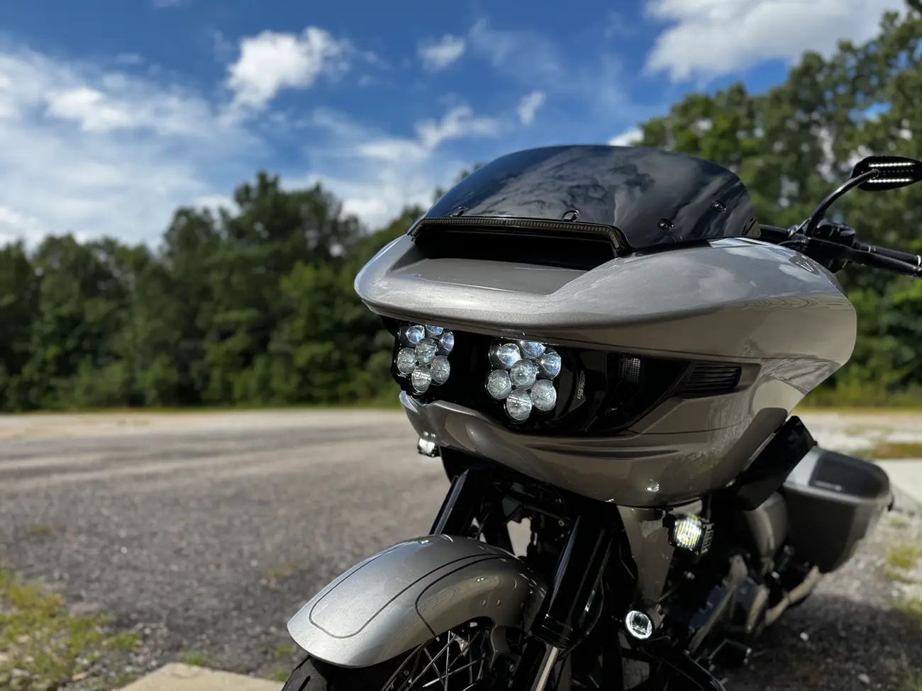 • Plaques de vitesse ventilées noir brillant comblent l’espace de chaque côté des phares, mariant l’esthétique racing Shark Demon® au style moto moderne. La grille décorative assure le flux d’air d’origine