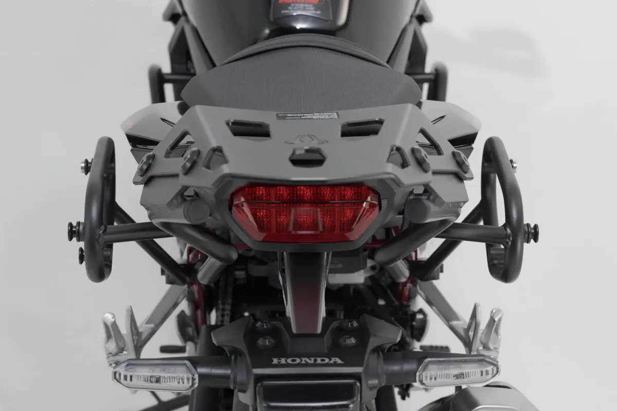 • Compatible avec les sacoches latérales Legend Gear LC1/LC2, valises latérales URBAN ABS, SysBag avec platine d’adaptation, support latéral universel et porte-plaque.