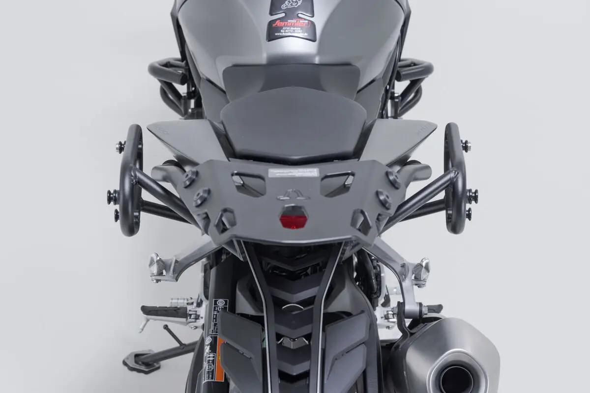 • Compatible avec les sacoches latérales Legend Gear LC1/LC2, valises latérales URBAN ABS, SysBag avec platine d’adaptation, support latéral universel et porte-plaque.