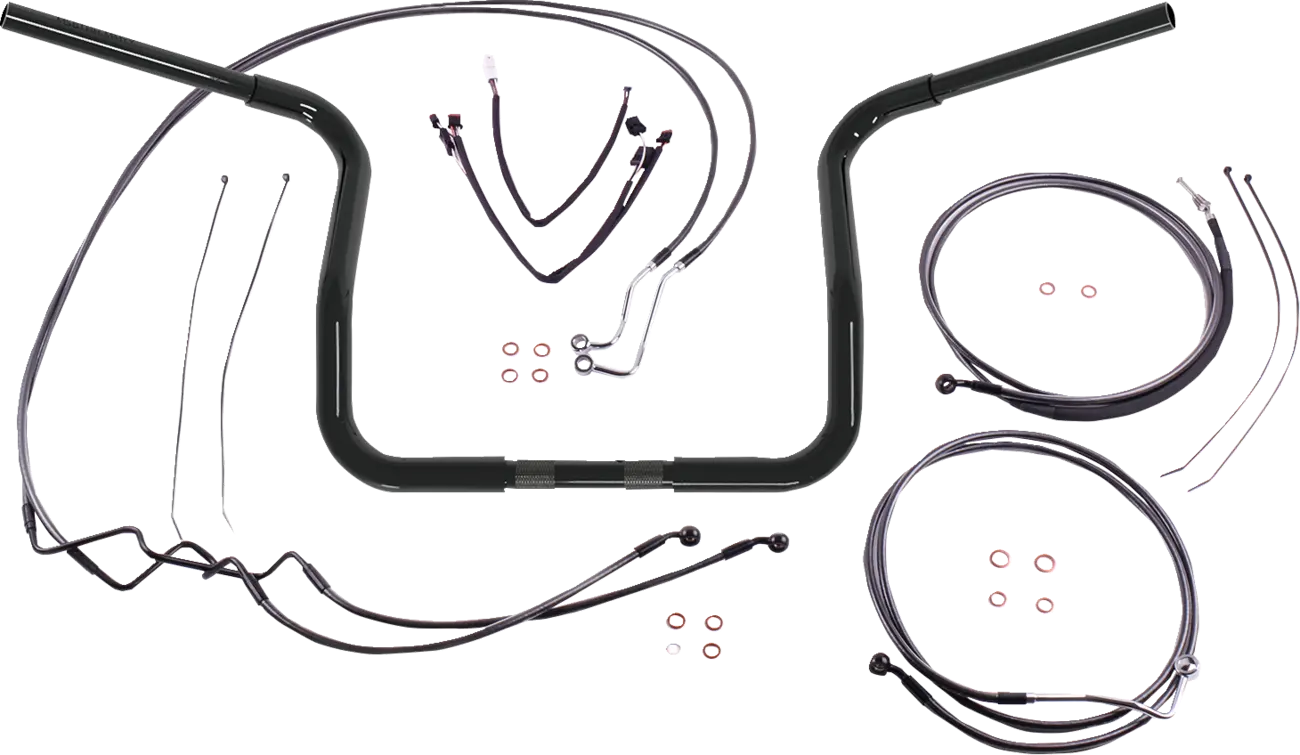 • I kit includono: manubri Magnum 1-1/4" Caliber, cavi gas e minimo o prolunghe throttle-by-wire, cavo frizione o linea idraulica, tubi freno, rondelle in rame, minuteria e qualsiasi cablaggio o prolunga indicatori necessario