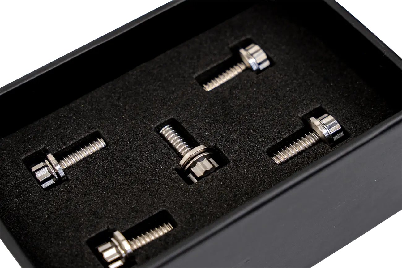 • Sostituisce i bulloni di serie con viteria in titanio grado 5 progettata per resistenza, precisione ed un’estetica più decisa