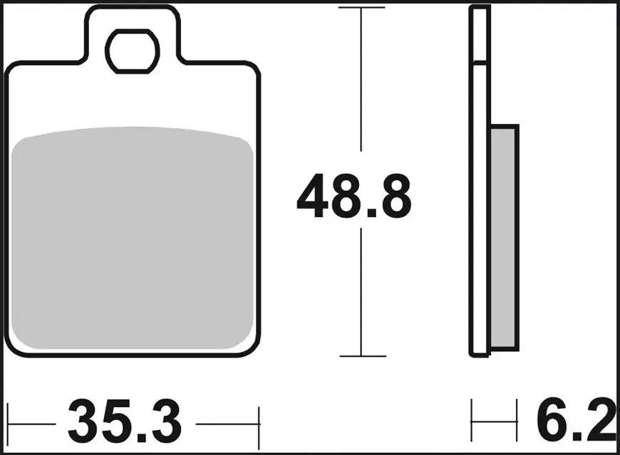• Pasticca freno Sinter XS Scooter, misure: lunghezza 35,3mm, larghezza 48,8mm, spessore 6,2mm