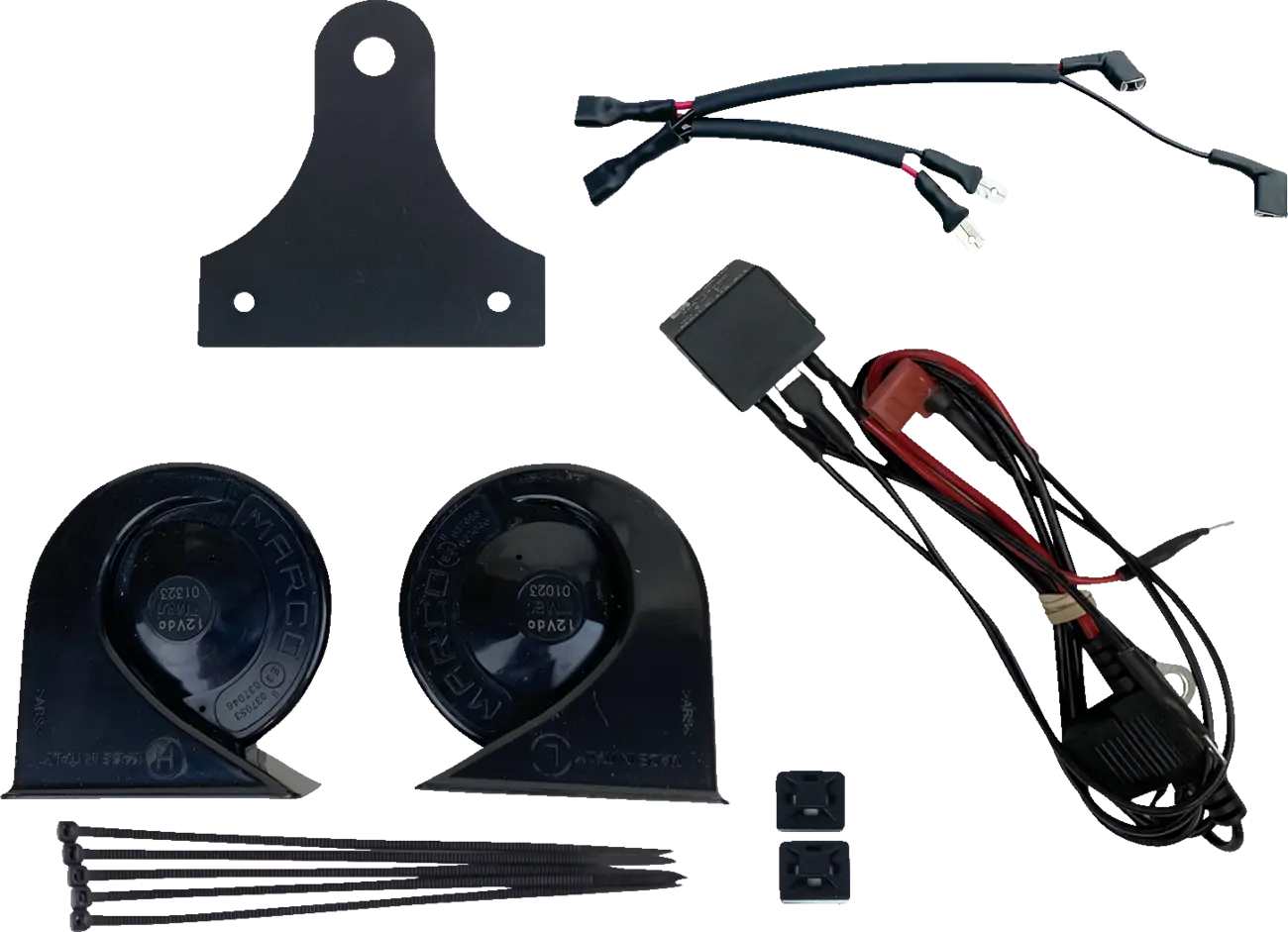 • Sostituisce il clacson di serie con doppie trombe elettromagnetiche MARCO da 109 dB (a 2 metri) tono basso e alto