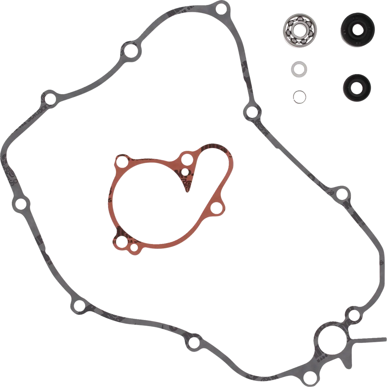 • Il kit include: cuscinetti dove previsto, paraoli in gomma, tenuta meccanica pompa acqua dove previsto, guarnizione coperchio laterale, guarnizione pompa acqua, anelli di sicurezza sull'albero pompa e rondelle di rame per scarico